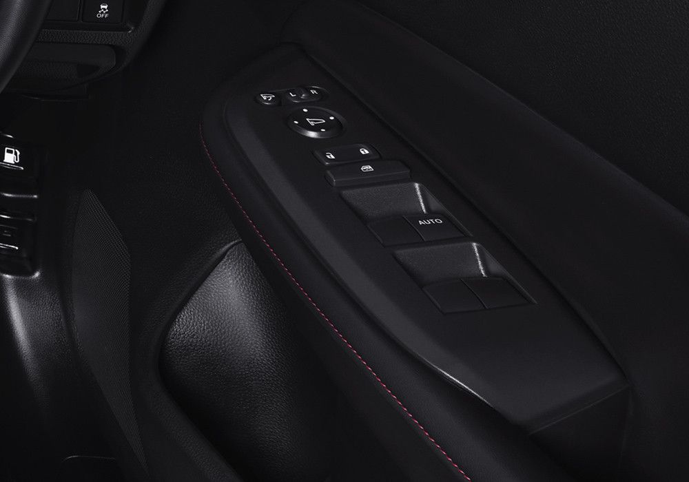 Balutan material kulit dengan aksen jahitan berwarna merah pada bagian Armrest menekankan kesan sporty, siap menemani Anda berkendara melewati setiap sudut penjelajahan.