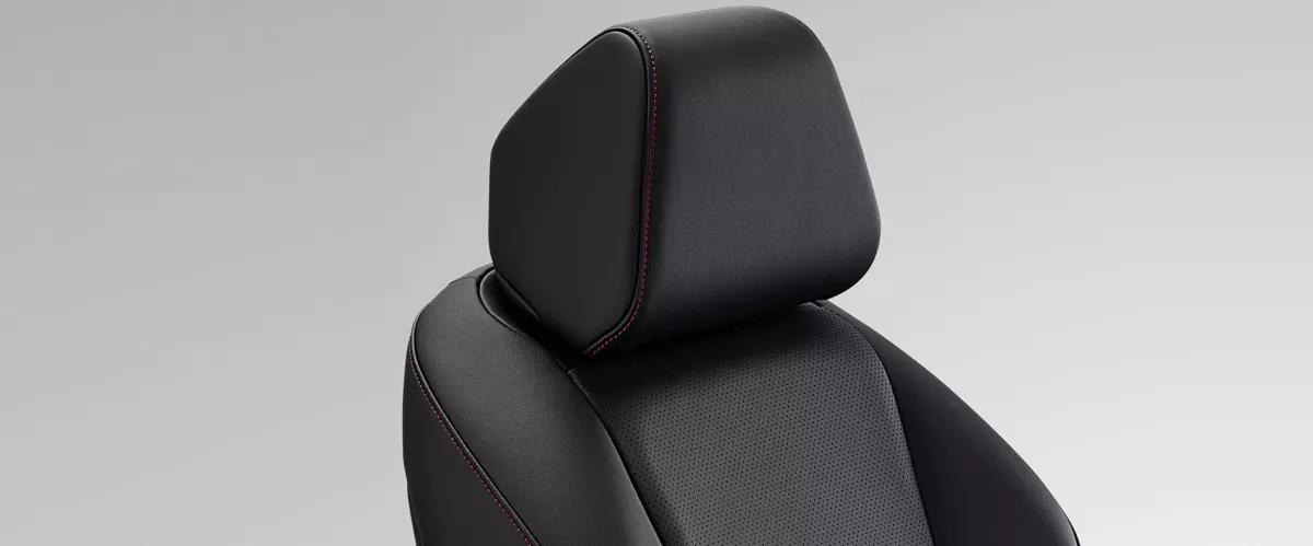 Kursi berbahan kulit premium dengan aksen jahitan berwarna merah yang lembut untuk memberikan kenyamanan ekstra saat Anda duduk di kursi penumpang.