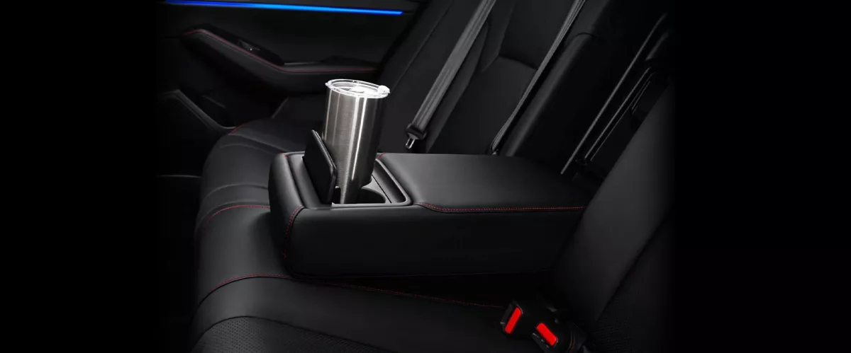 Nikmati kenyamanan yang maksimal ketika Anda duduk di kursi penumpang belakang yang dilengkapi dengan tempat menaruh minuman.