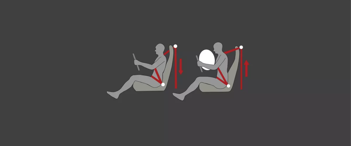 Saat terjadi tabrakan, fitur ini akan mengencangkan sabuk pengaman sehingga tubuh Anda tetap berada pada posisi untuk mencegah gerakan dada ke depan serta berfungsi mengurangi tekanan berlebih dan mencegah cedera pada bagian dada dan memastikan posisi tubuh jatuh tepat pada airbag yang mengembang.
