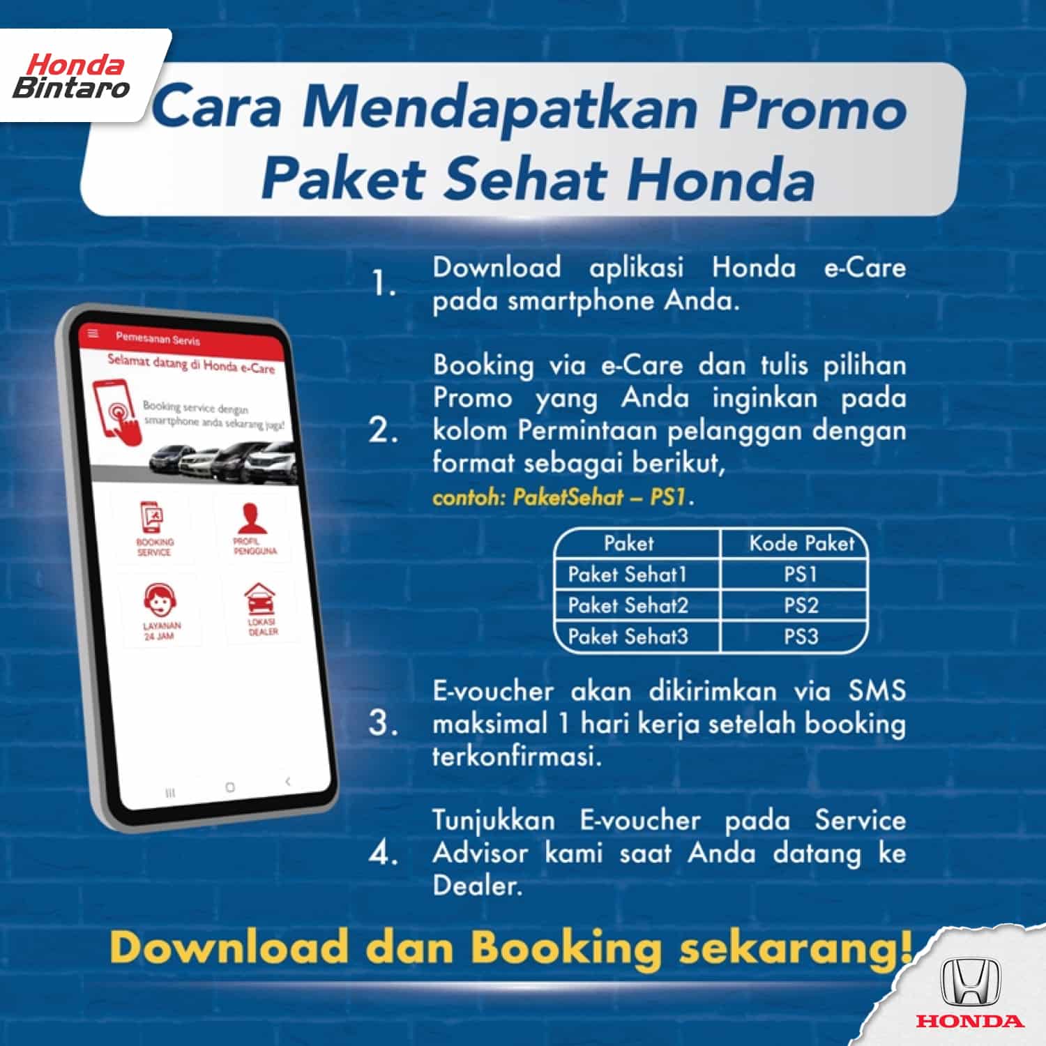 - Melakukan Booking via E-care sebelum datang ke Dealer dengan mencantumkan Kode Paket pada kolom Permintaan pelanggan pada E-care. Booking harus dilakukan H-1 sebelum Pk 15.00 WIB dari tanggal kedatangan.