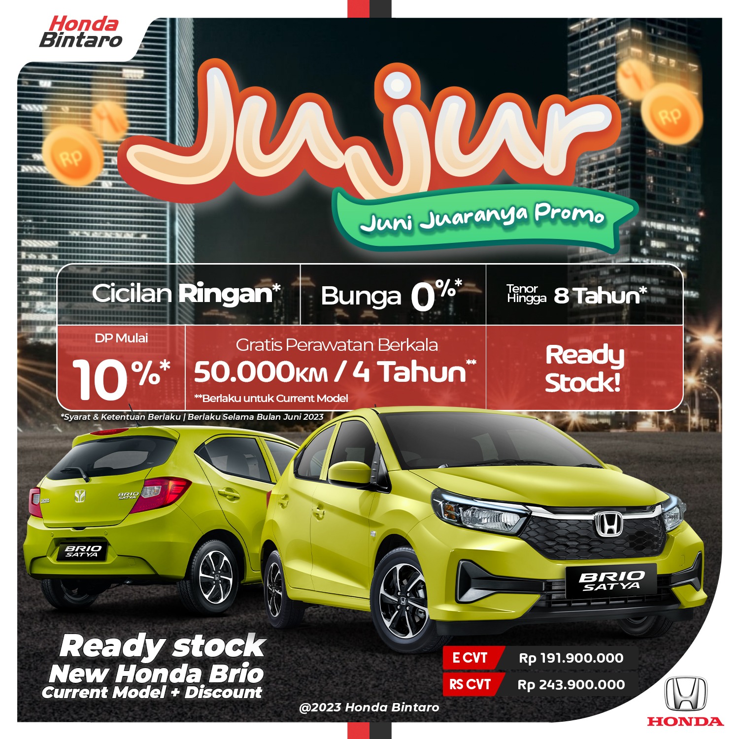 Hai teman Honda! Promo JUJUR (Juni Juaranya Promo) sedang berlangsung di Honda Bintaro!