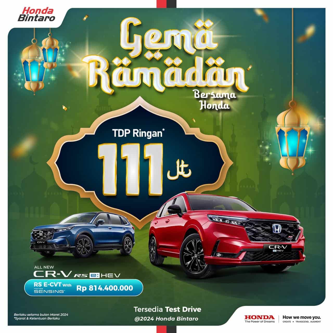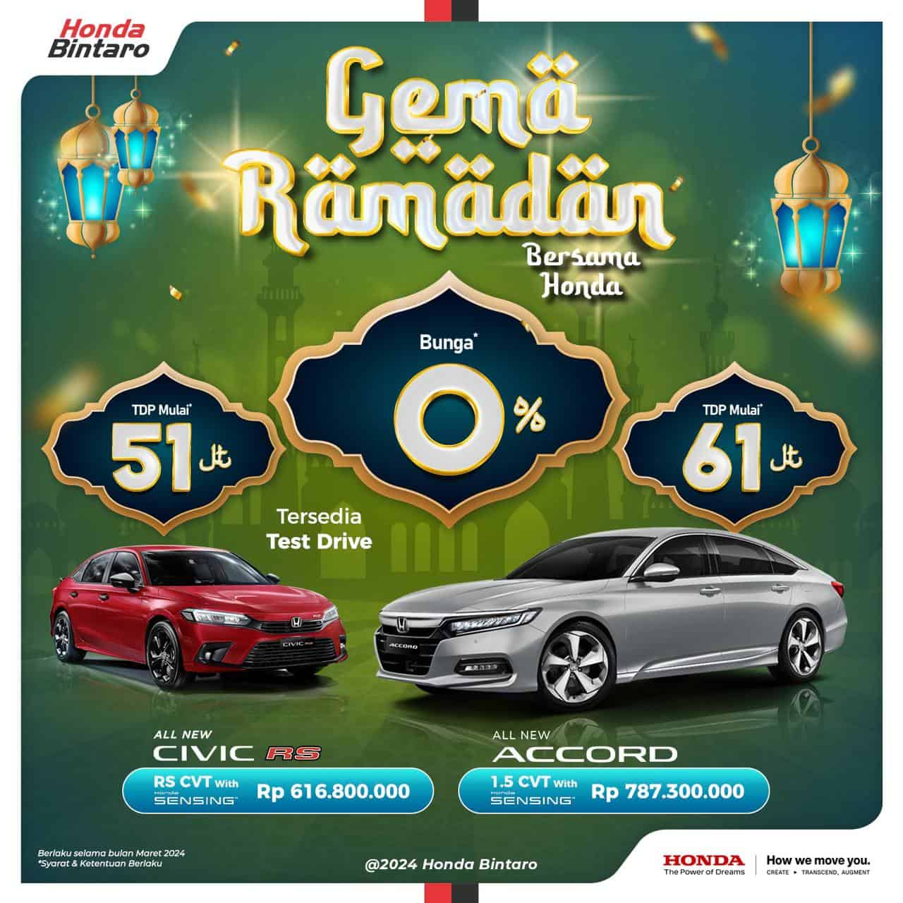 Hai teman Honda! Ini saatnya mewujudkan mobil Honda impian dengan program pembelian Gema Ramadan. Program ini memudahkan Anda mewujudkan mobil Honda idaman dengan beragam penawaran menarik. Jangan lewatkan promo terbatas ini selama bulan Ramadan 2024.
