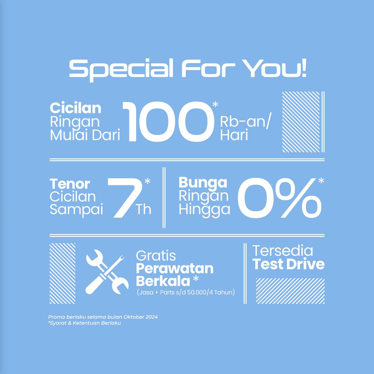 Di bulan ini kamu juga bisa mendapatkan gratis servis sampai 4 tahun/50.000 km juga lho, beli mobil jadi makin cuan kan?
