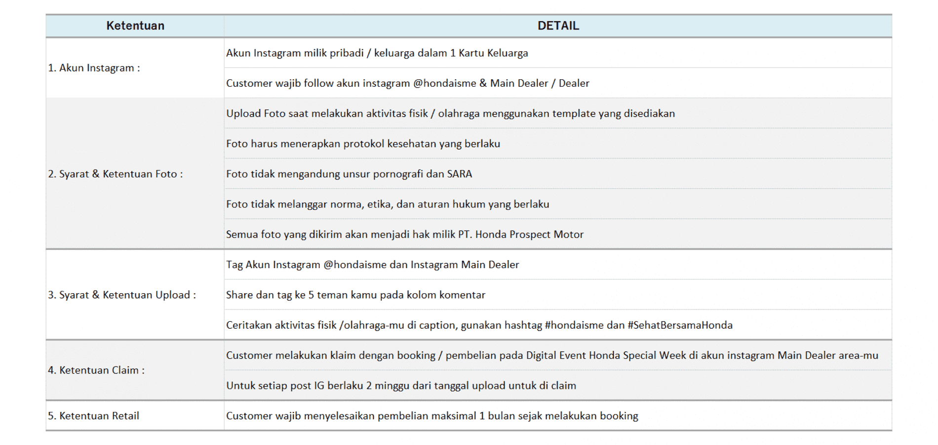 2. Berlaku untuk pembelian online (Website Honda / Website Dealer / E-Commerce resmi Dealer Honda, dll) dan pembelian langsung di dealerHonda